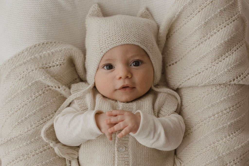 Hand knitted from 100% Baby Alpaca, our pieces are ethically handcrafted in South America according to Fair Trade principles. Combining traditional methods of craftmanship with modern design, these pieces are truly unique heirloom items. Baby Alpaca is a luxurious fibre found local to our artisans. It provides comfort and breathability for your little one's and is hypo-allergenic. For more on why we use Baby Alpaca fibre, read about it HERE.