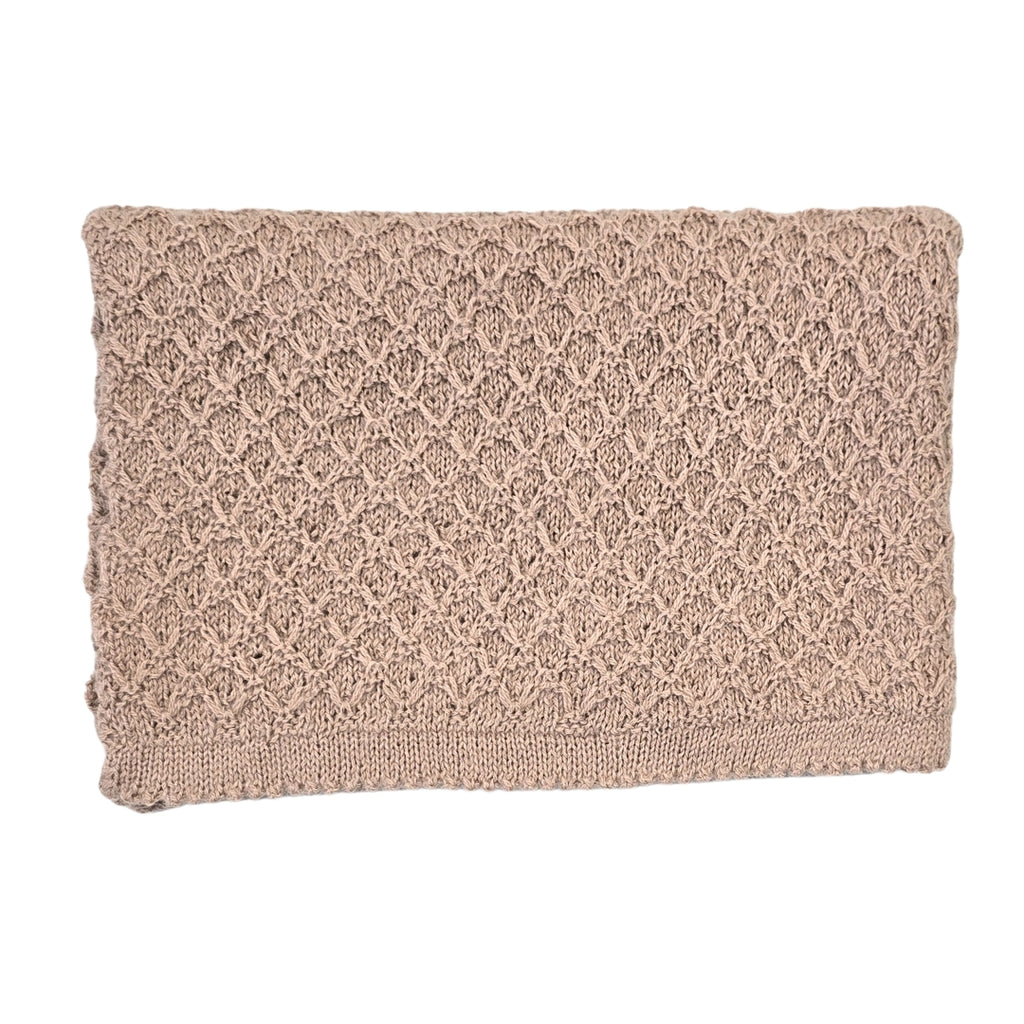 Knitted in a delicate diamond-textured stitch and finished with the sweetest picot edging. Ideal for prams, cribs, and eventually little laps, it’s a timeless piece that grows beautifully with your child.