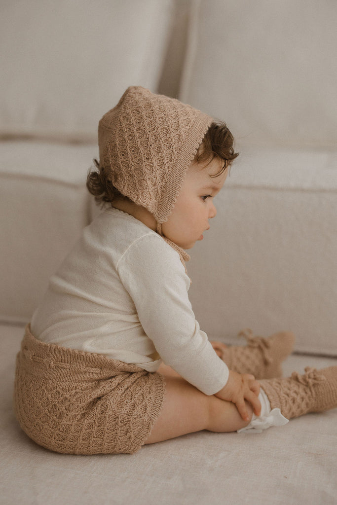 Hand knitted from 100% Baby Alpaca, our pieces are ethically handcrafted in South America according to Fair Trade principles. Combining traditional methods of craftmanship with modern design, these pieces are truly unique heirloom items. Baby Alpaca is a luxurious fibre found local to our artisans. It provides comfort and breathability for your little one's and is hypo-allergenic. For more on why we use Baby Alpaca fibre, read about it HERE.