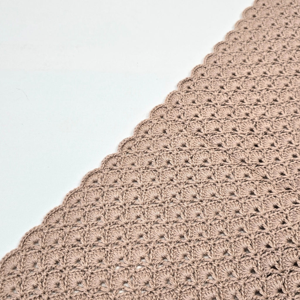 Hand crafted in a sweet scallop-stitch and edging. Ideal for prams, cribs, and eventually little laps, it’s a timeless piece that grows beautifully with your child.