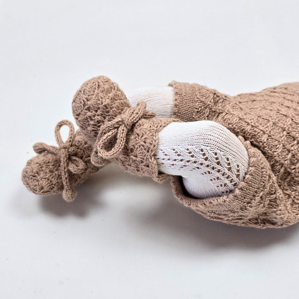 Hand crocheted from 100% Baby Alpaca, our pieces are ethically handcrafted in South America according to Fair Trade principles. Combining traditional methods of craftmanship with modern design, these pieces are truly unique heirloom items. Baby Alpaca is a luxurious fibre found local to our artisans. It provides comfort and breathability for your little one's and is hypo-allergenic. For more on why we use Baby Alpaca fibre, read about it HERE.